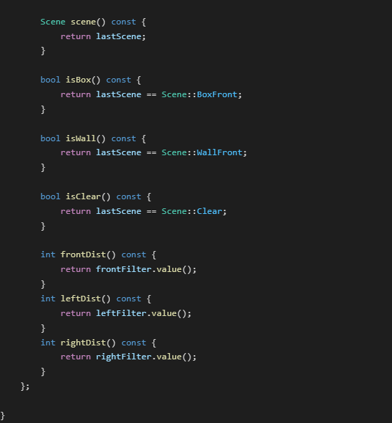 - If both sides report short distances and the difference between them is small, that means the robot is facing something symmetric like a box.