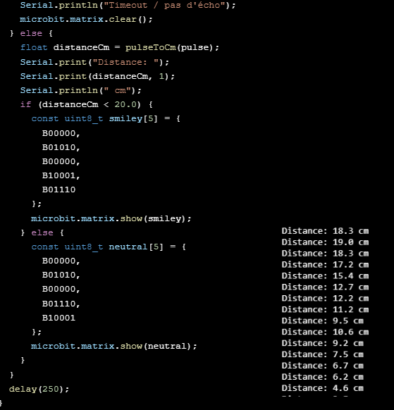 - To make the detection more stable, I used two different thresholds: one to decide that the path is blocked, and another (slightly higher) to decide it’s clear again. This prevents the robot from switching back and forth too quickly when the measurements fluctuate.