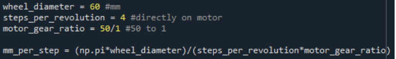 First things first, the wheels. They will be driven by motors with encoders, so to make our life easier down the line we need to define the distance the wheel moves along the ground for each step of the encoder. This is a simple ratio of the circumference of the wheel and the total encoder steps in one revolution.