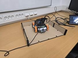 The last thing I have done this week was trying to get the car to move somewhat reliably trough a path. I change multiple parameters, like how close it should detect a turn. I got it to move through the course, but I also saw that it is not reliable since it strafed of course. And if we want to pick up a package it needs to stay centered. So to improve how the robot keeps itself centered in the path, I also started working on a centering function in the code. The idea was that if one of the side sensors detects that the robot is getting too close to one of the walls, it should move (strafe) slightly to the opposite side to re-center itself. For example, if the right distance sensor measures a value below a certain threshold, the robot strafes to the left, and vice versa. To make this correction more intelligent and avoid the robot constantly overcorrecting, I added a counter that keeps track of how many times it has had to strafe in the same direction. When this counter reaches three, the robot will slightly rotate in the opposite direction instead of just continuing to move sideways. This helps it correct its heading if it has been drifting diagonally along the wall. This centering logic made the robot move more smoothly and maintain a more stable position in the middle of the path, but it is not optimal and will need to be refined.