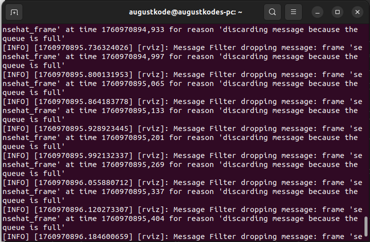 This happend because the default reliability policy was set to reliable, but the code demanded best effort. After fixing this, I was challenged by the next task. I was in the wrong fixed frame, and because of this, I recieved this message in the terminal: