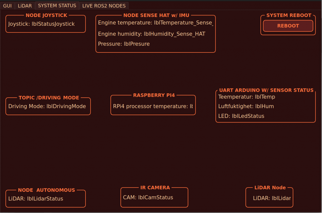 Its time to get everything tied together in the GUI. At least the data from the Arduino, the IR ZeroCam and the /driving_mode topic. I wanted to really optimize everything. I have done a lot of research, searched for hours. The results? Satisfying!