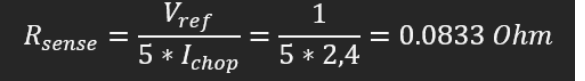 With two 2 resisters Vref is set to be 1V. Ichop is calculated by with the max amperage the motors can handle times 2 so we can drive 2 motors with one driver.