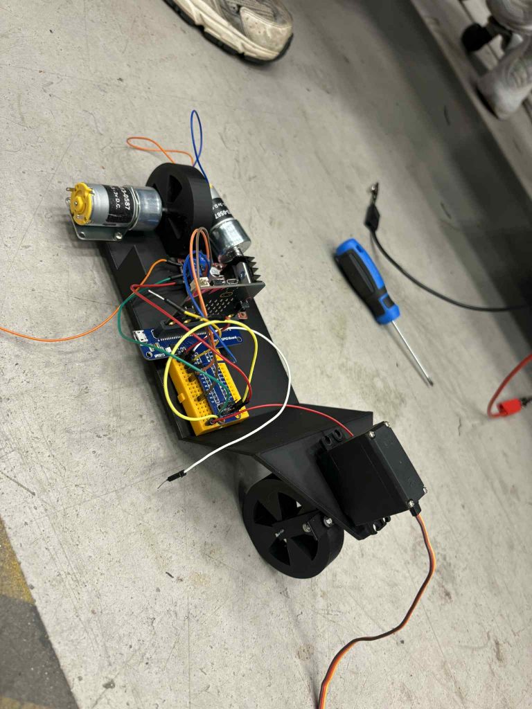 The main goal was to test the steering mechanism in real life, and I’m happy to say that it worked successfully, as shown in the picture and video below. It was exciting to see the design I created in SolidWorks come to life and move and turns .