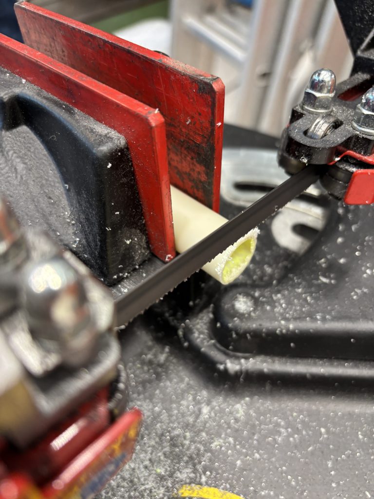 The manifolds consist of a pvc tube with glued on 3d-printed fittings. The tube is cut to length on the bandsaw in the prototyping laboratory. For all these operations i am careful to always have another person in the workshop in the case of injury.