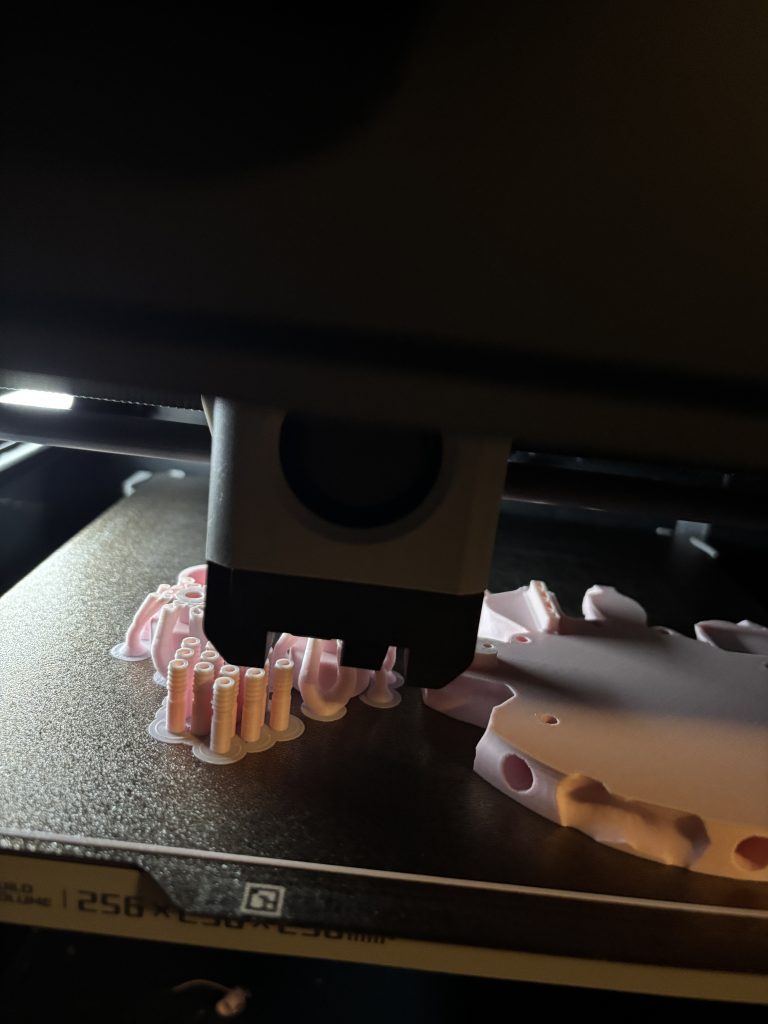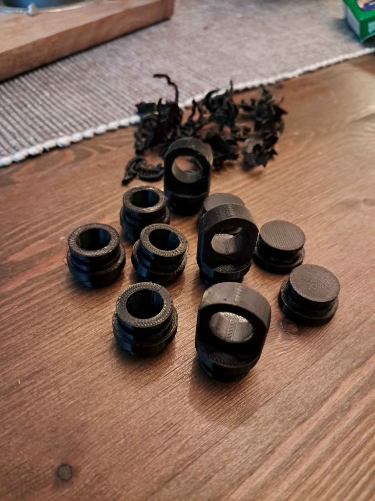 However, most of my work this week was things that could run in the background, that for the most part being 3d-printing components. I have been helping out the other members here and there, but my task was mainly to make the four cylinders, and the remaining cylinder attachment rods that I designed last week. This meant that I could do some of the busy work for this project, while also working on the other course. The printed parts are mainly the ones that I designed in week 6, that being the hydraulic cylinder components, with the design changes I made last week.