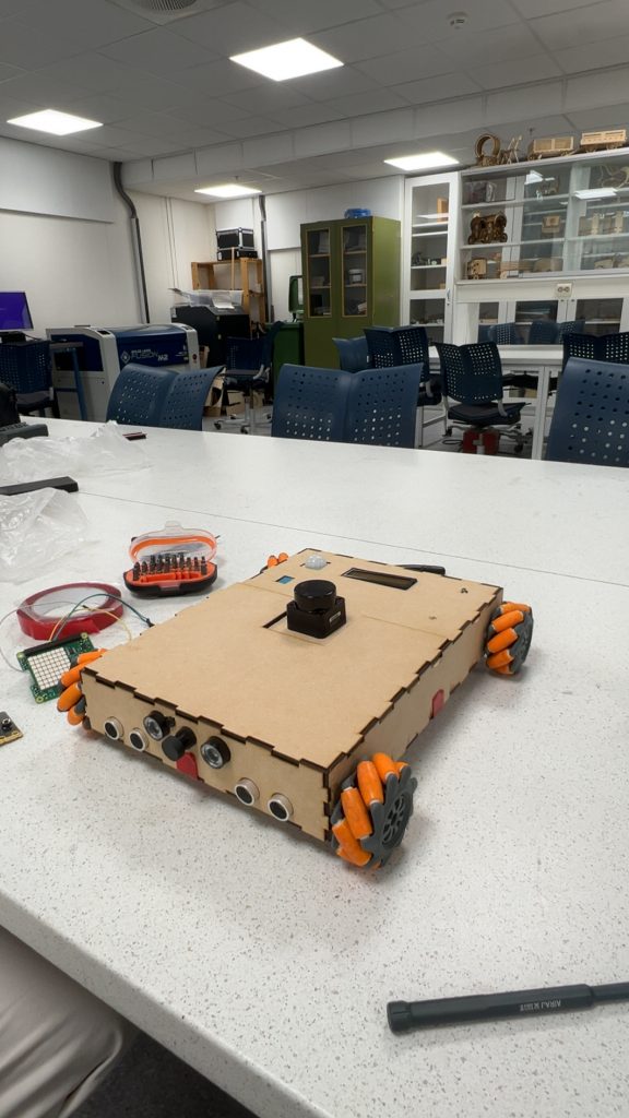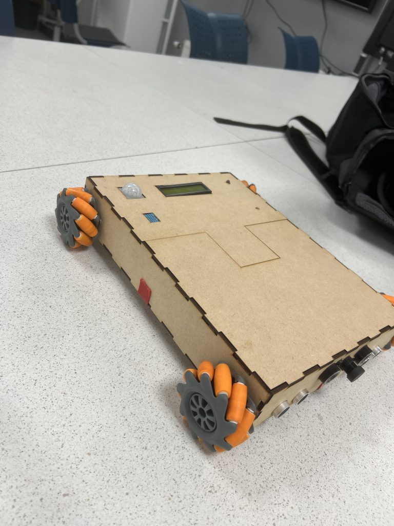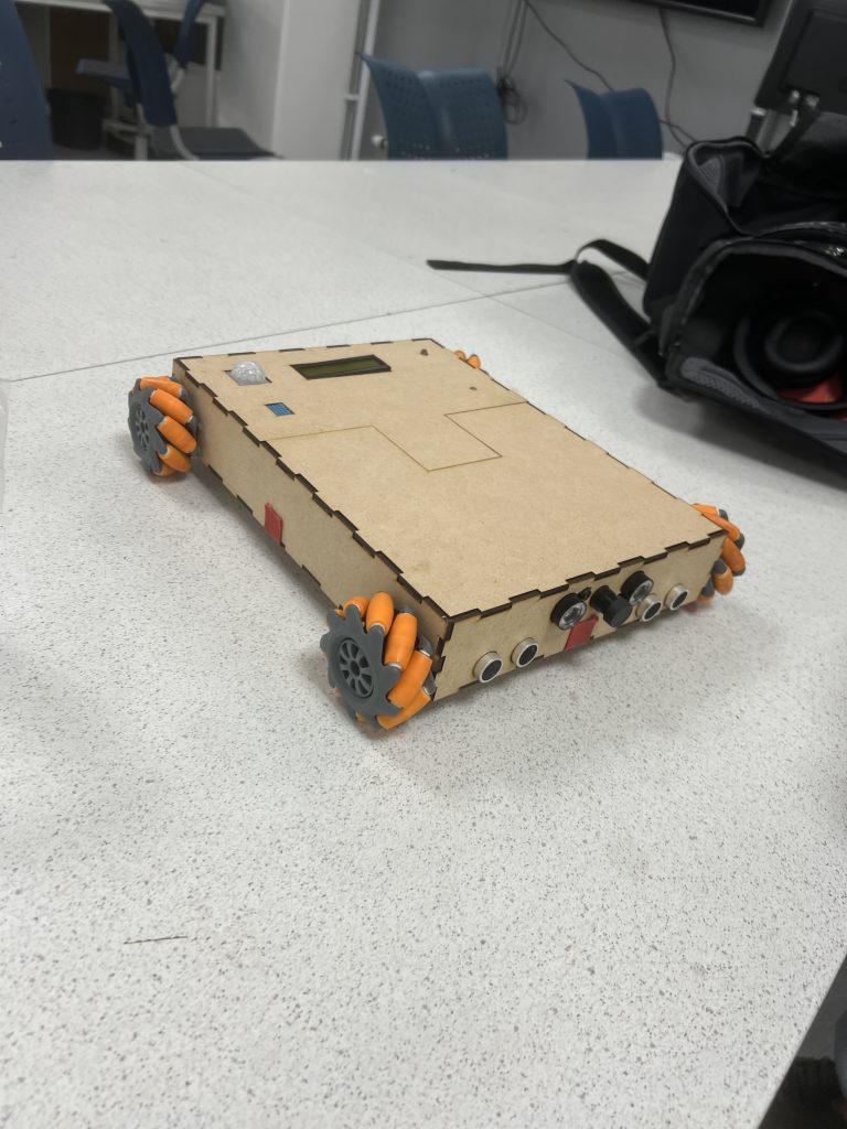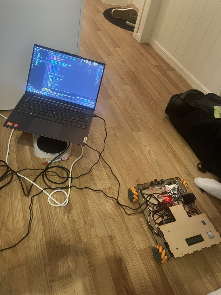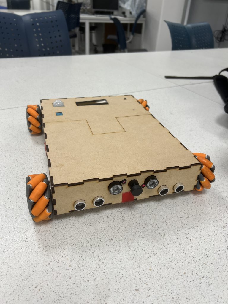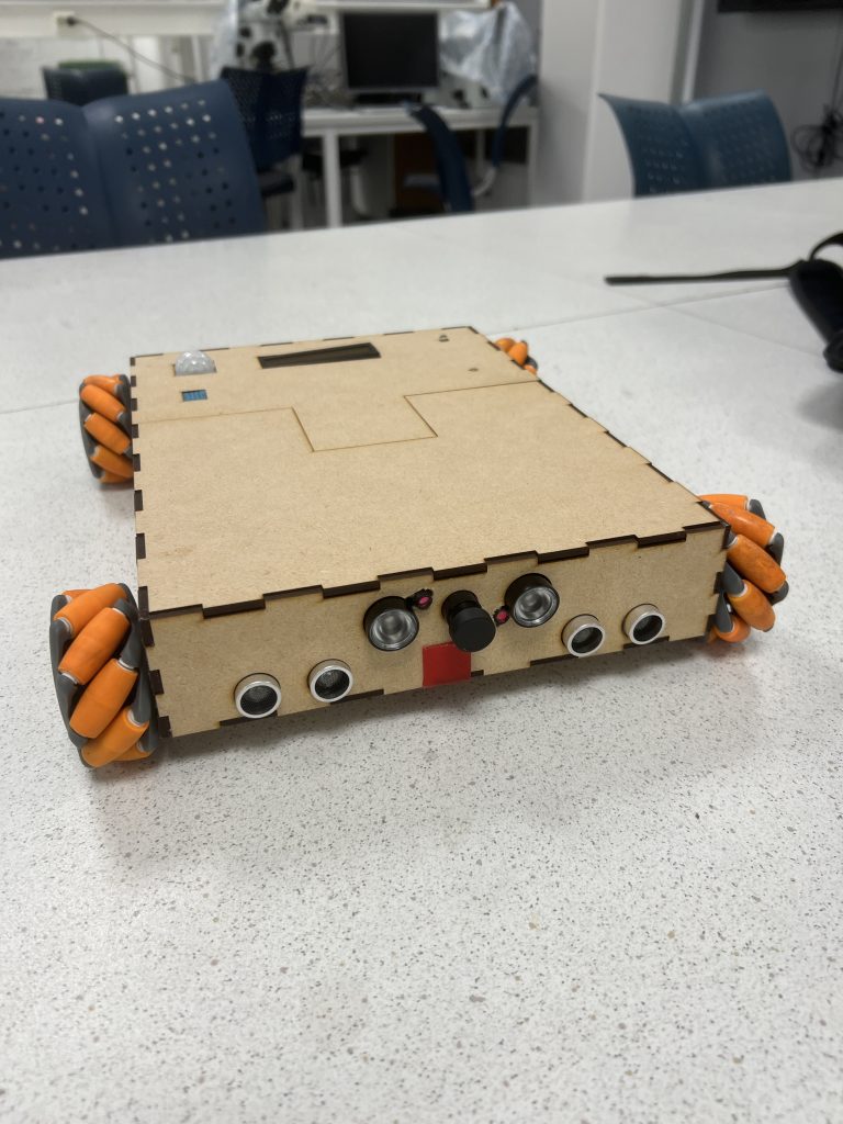 When writing this, after all the hours it took putting the frame together, designing it, gluing it, mounting the sensors and cameras, taping and sorting all the cables inside and connect them to their respective pins, drilling and mounting the weels and motors, without even mentioning all of the hours, iterations, discussion and implementations to actually see our envision standing in front of us, physically, in real life, we feel proud.