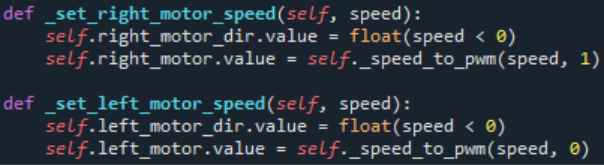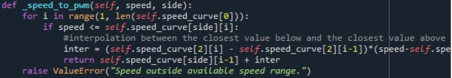 Now for the implementation in the motion control system, we store the output from the calibration in a variable in the motion control system, then we mostly just need a function to convert a speed value to a PWM value.