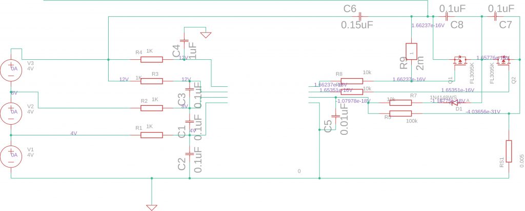 On the third schematic, I removed the central chip because it isn’t easily simulatable in SPICE, but I am simulating the rest of the schematic to see the values I have at the input and see what I get.