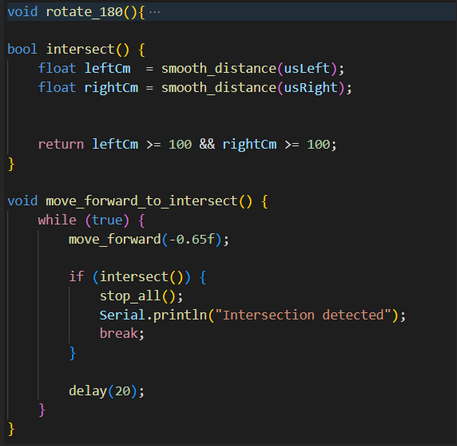 Since Theo is developing a maze-solving algorithm, he needs additional functions to handle the car’s movement. To contribute, I spent some time this week implementing a few extra movement features. I created a turn_180 function that rotates the car 180 degrees, as well as a function that detects intersections. This allows the car to drive forward until it reaches an intersection and then make decisions based on the available paths.