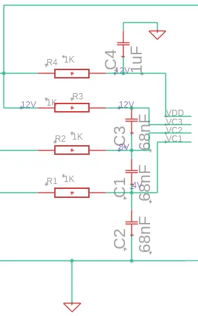 After reviewing the datasheet, I conclude that I must have: VDD = 12.00 V, VC1 = 4.00 V, VC2 = 8.00 V, VC3 = 12.00 V