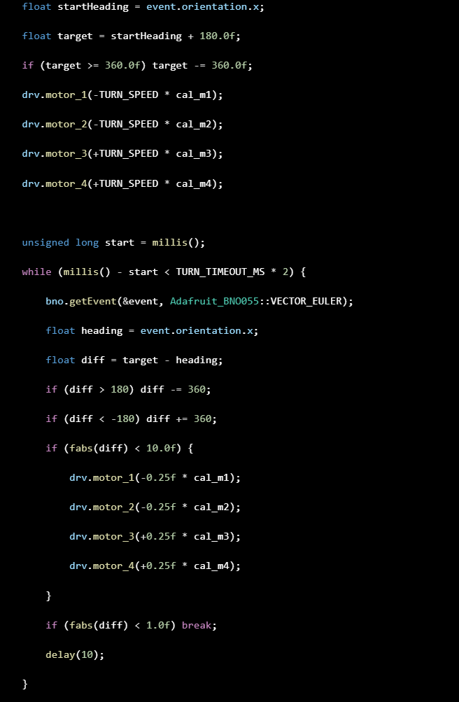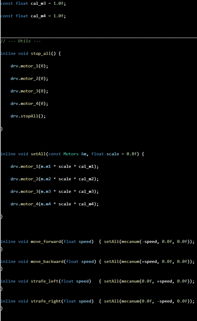 Next came another issue — only the front wheels were turning. Great, more trouble for me. This turned out to be the same problem I faced earlier when integrating the PID controller with the IMU. It showed that the rotation input was overpowering the forward motion input in the mecanum wheel calculation. To test this, I set the rotation value to 0 and voila, all the wheels started spinning in the same direction as they should.