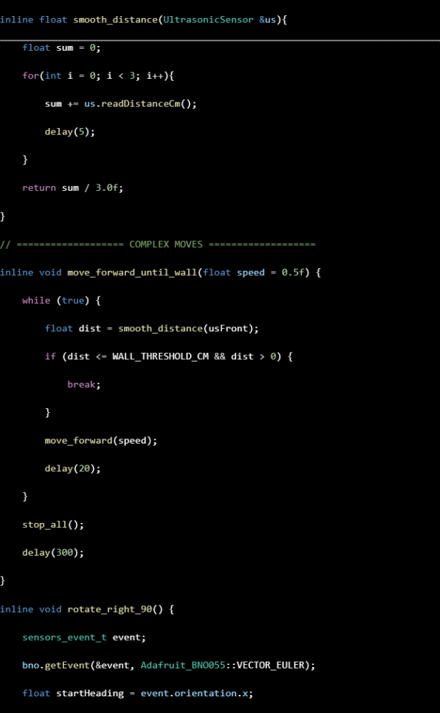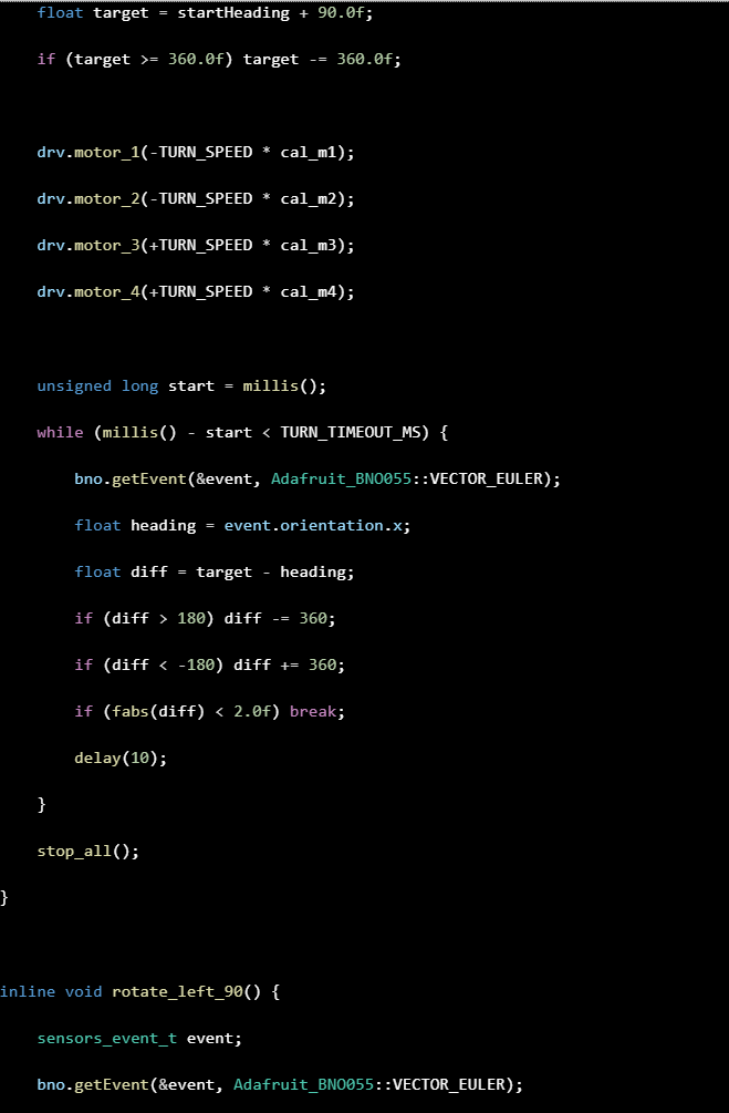 I then decided to create a new PID controller in a separate library folder to avoid breaking the one I had already made. The new controller reused much of the logic from the previous version that handled the IMU and wall sensors, but this time I needed to include the encoder feedback. To keep things simple at first, instead of controlling each wheel individually, I implemented it so that each side of the robot would spin at roughly the same speed.