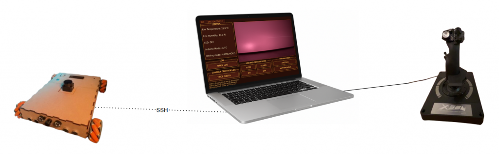 We achieved our ultimate goal, safe autonomous data collection. The system is also able to map the environment to a certain degree, check improvements for more information. The GUI, the joystick, and the vehicle are tightly interconnected. All three subsystems are essential for the overall system, and each one must function properly for the others to carry out their tasks.