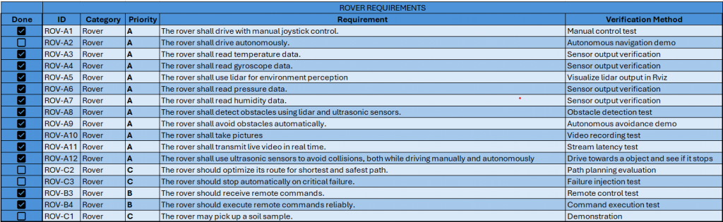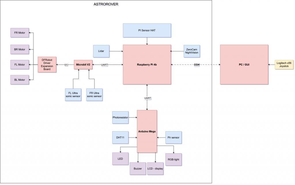 This final blog sums up Sanders and Augusts work. The theme of this project is space. The task was wide, and provided us significant freedom of exploration and opportunities to grow within systems and computer engineering. From here we derived the problem domain and ultimate goal: safe autonomous data collection. To achieve this, we have used sensorics and actuators. Some of the sensors used are LiDAR, DHT11, Ultrasonic sesnsors, IMU and barometer. Some of the actuators used are mechanic wheels. The methods followed was kanban, agile scrum and UML. We achieved our ultimate goal of autonomous data collection. The data is displayed in a GUI, and the results are logged in a file. We collect data, both from the environment and from the system.