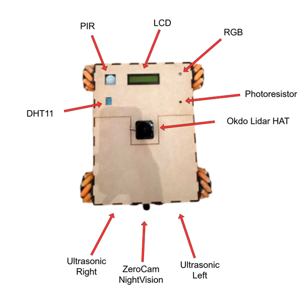- Ultrasonic sensors (Emergency stop, separate from ROS 2, to protect camera in front in case of user error or autonomous malfunction)