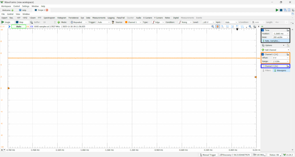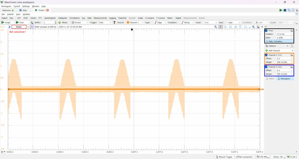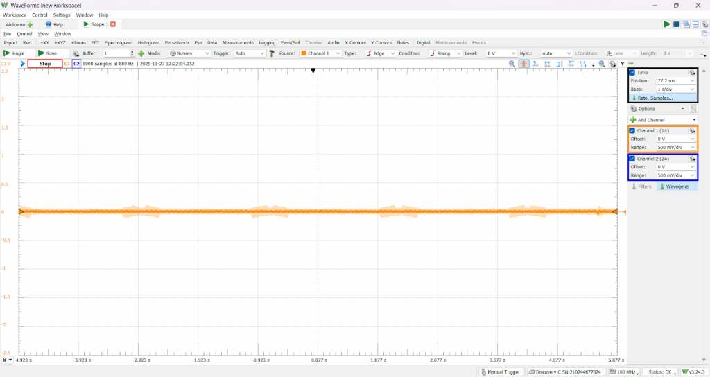 I also worked with Sondre to test the different active filter configurations. He helped me set up the code for generating the PWM test signals, and together we analyzed the output using the Analog Discovery.
