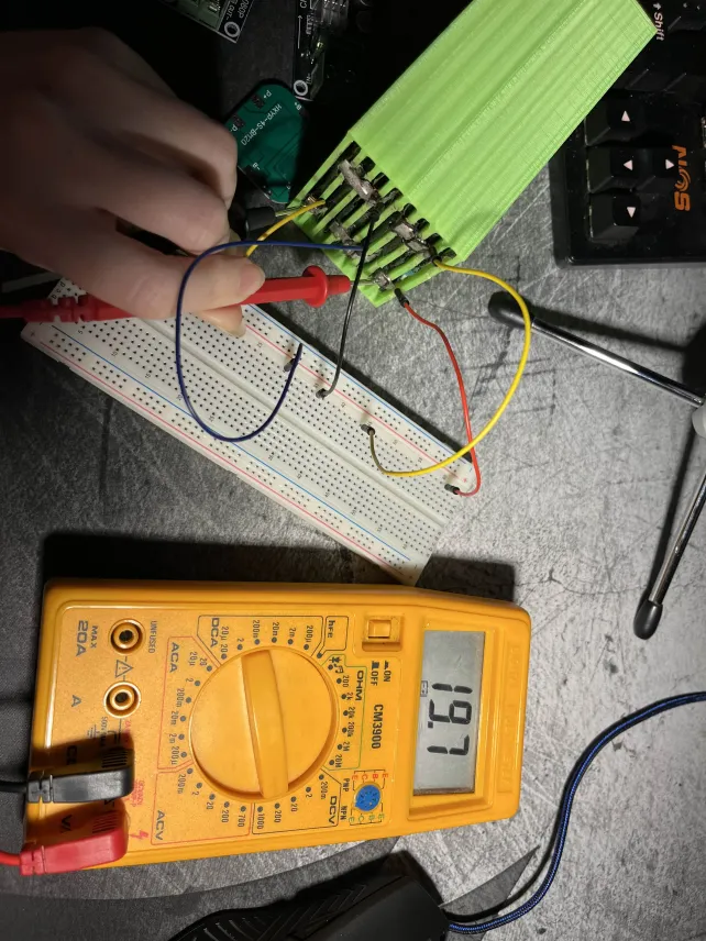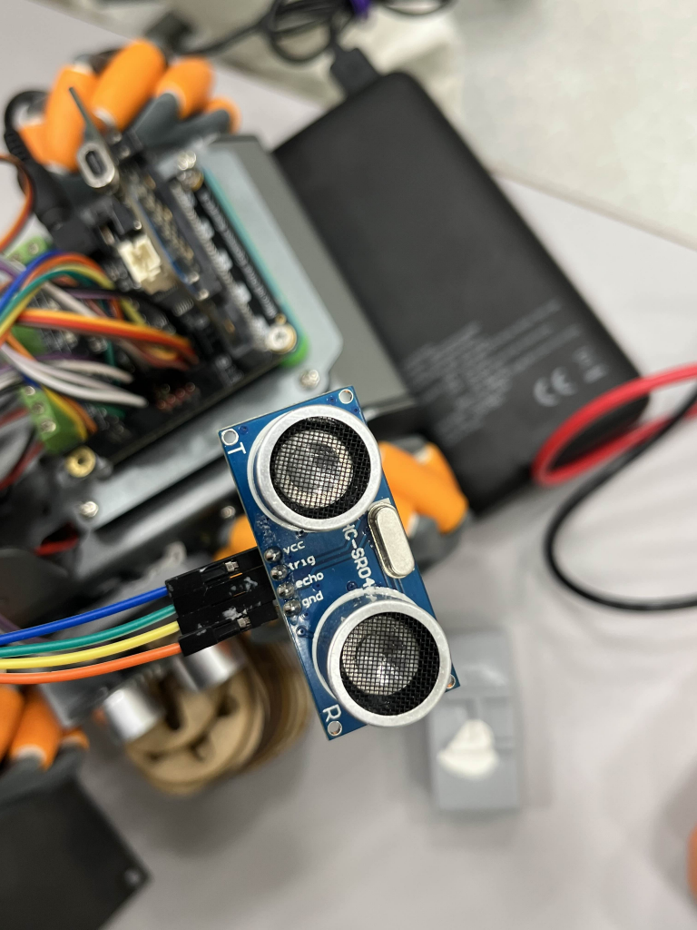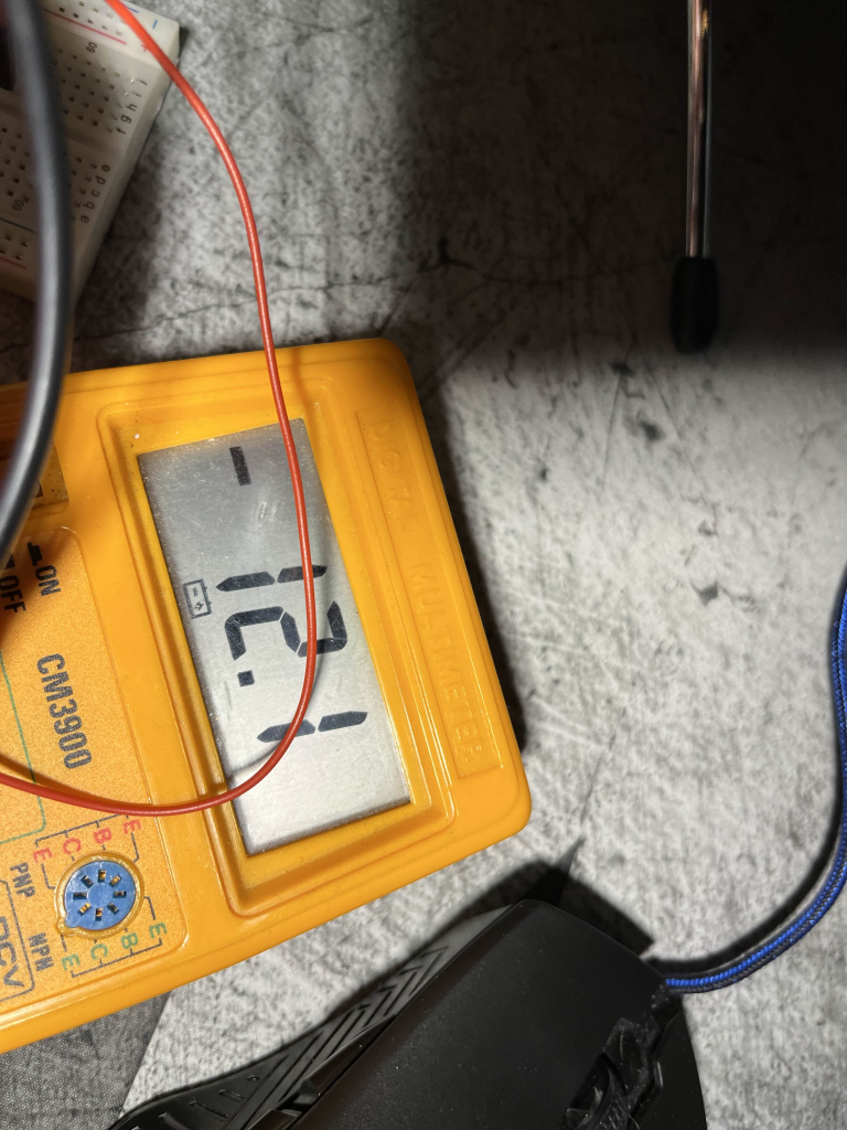 Lastly this monday me and Robin tried to solve an issue with the SR04 for Sondre and Theo. The side sensors kept occasionally malfunctioning. We tried to measure the connections and the power consumption and compare this to the datasheet to see if we could find the problem, but they seemed to be correct. We also checked the pins to see if that might be part of the issue, but we didn’t find anything wrong with the sensors. Also the front sensor never got damaged, only the sides. We ended up not finding any issues that could break them consistently, except if they broke due to them falling of the car because the 3d printed parts that are attached to the car keeps falling off. We also had a theory it might be due to us not having enough power for all the components during the spike of the wheel motors? but if that is the case this will hopefully be solved when we get the battery pack.